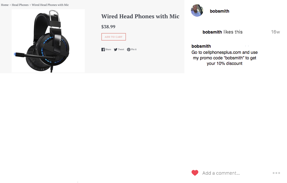 Step 7. Inform your affiliates that they can use the promo code that you just created on Instagram as shown below so that if anyone uses the code, they will get a discount and the affiliate will get credit for the referred sale.